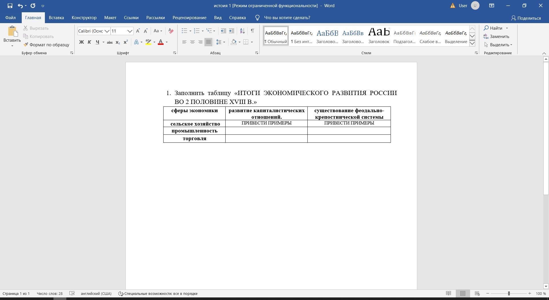 Таблица по истории Итоги экономического развития России во второй половине 18 века примеры