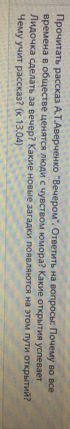 А.Т. Аверченко '' вечер'' ответы на вопросы.
