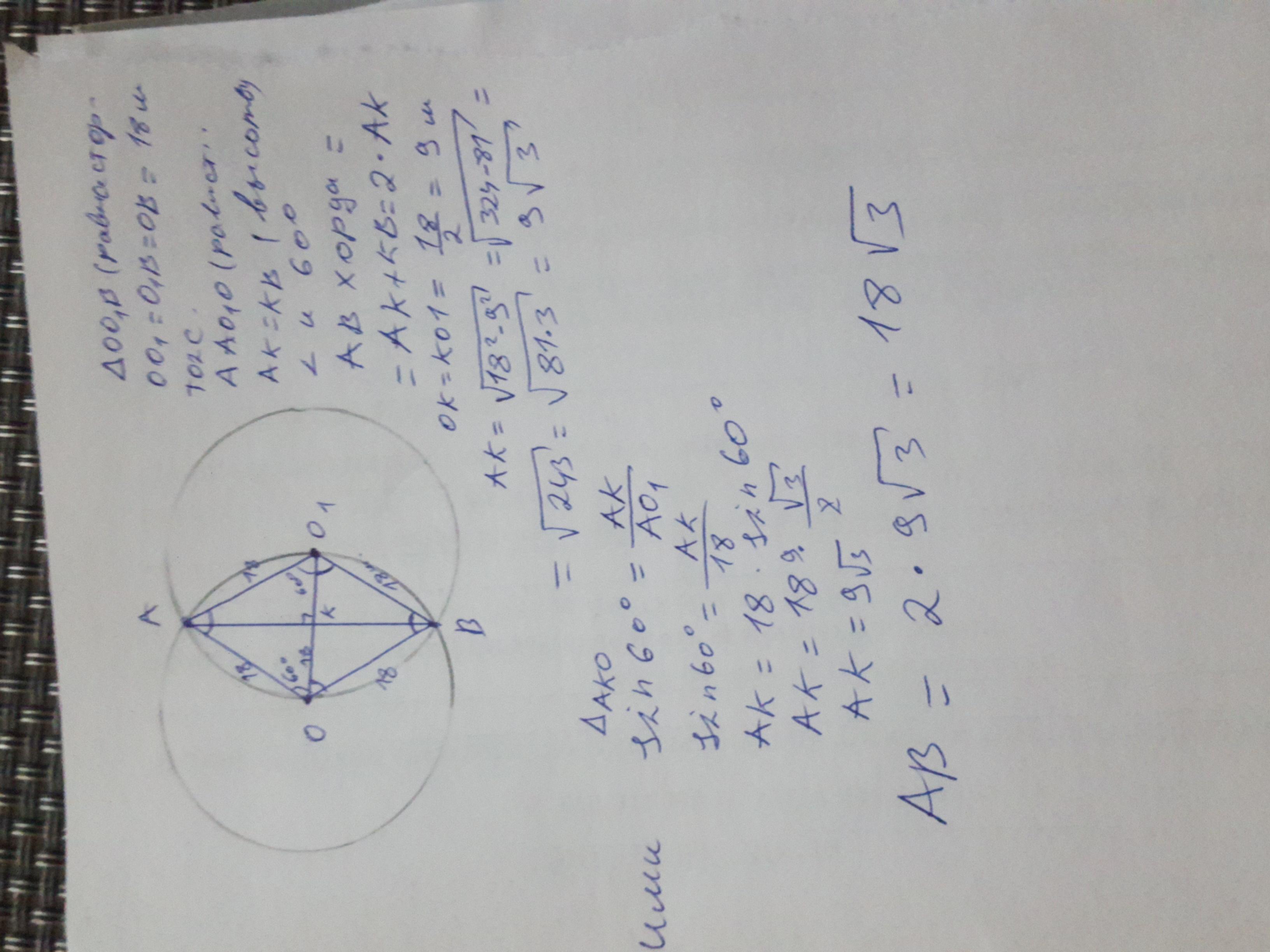 Вычисли длину общей хорды, если радиус окружности равен 18 м.