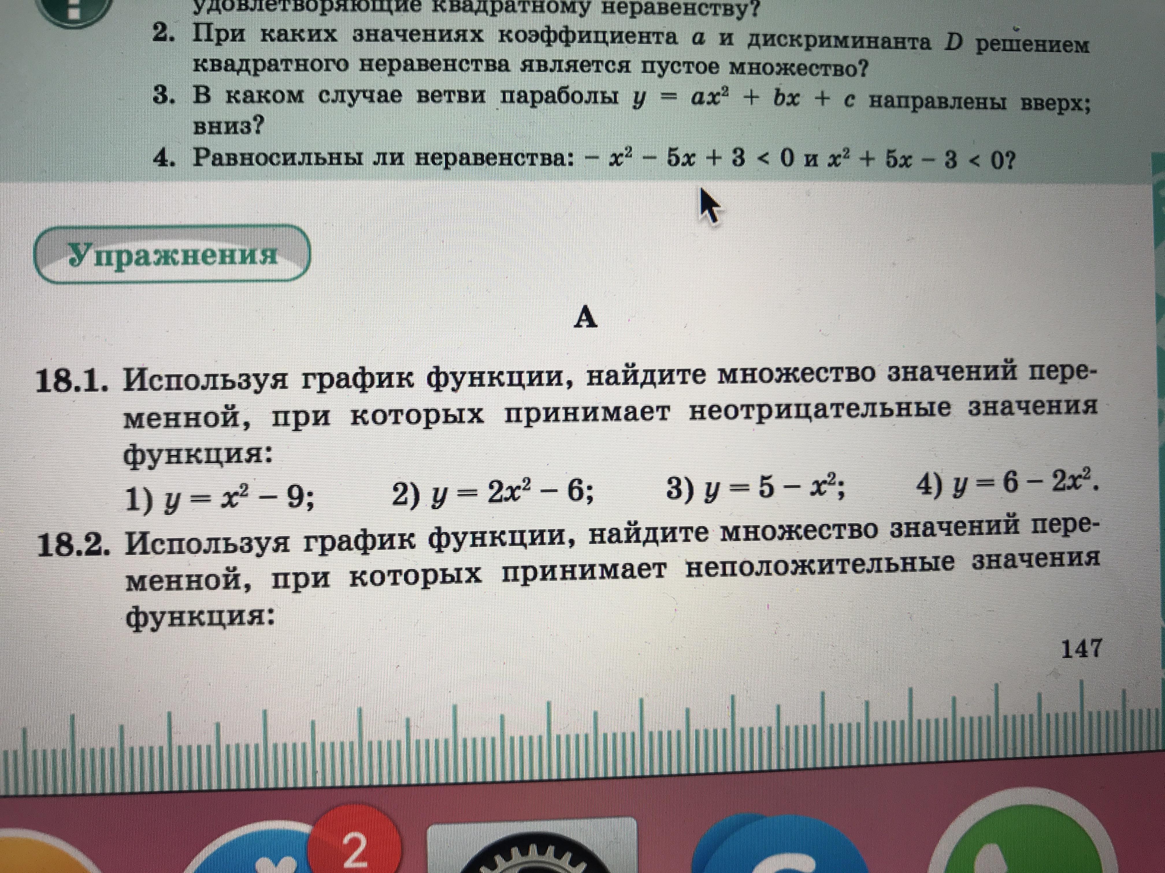 Используя график функции найдите множество значений переменной, при которых принимает неотрицательные значения функция