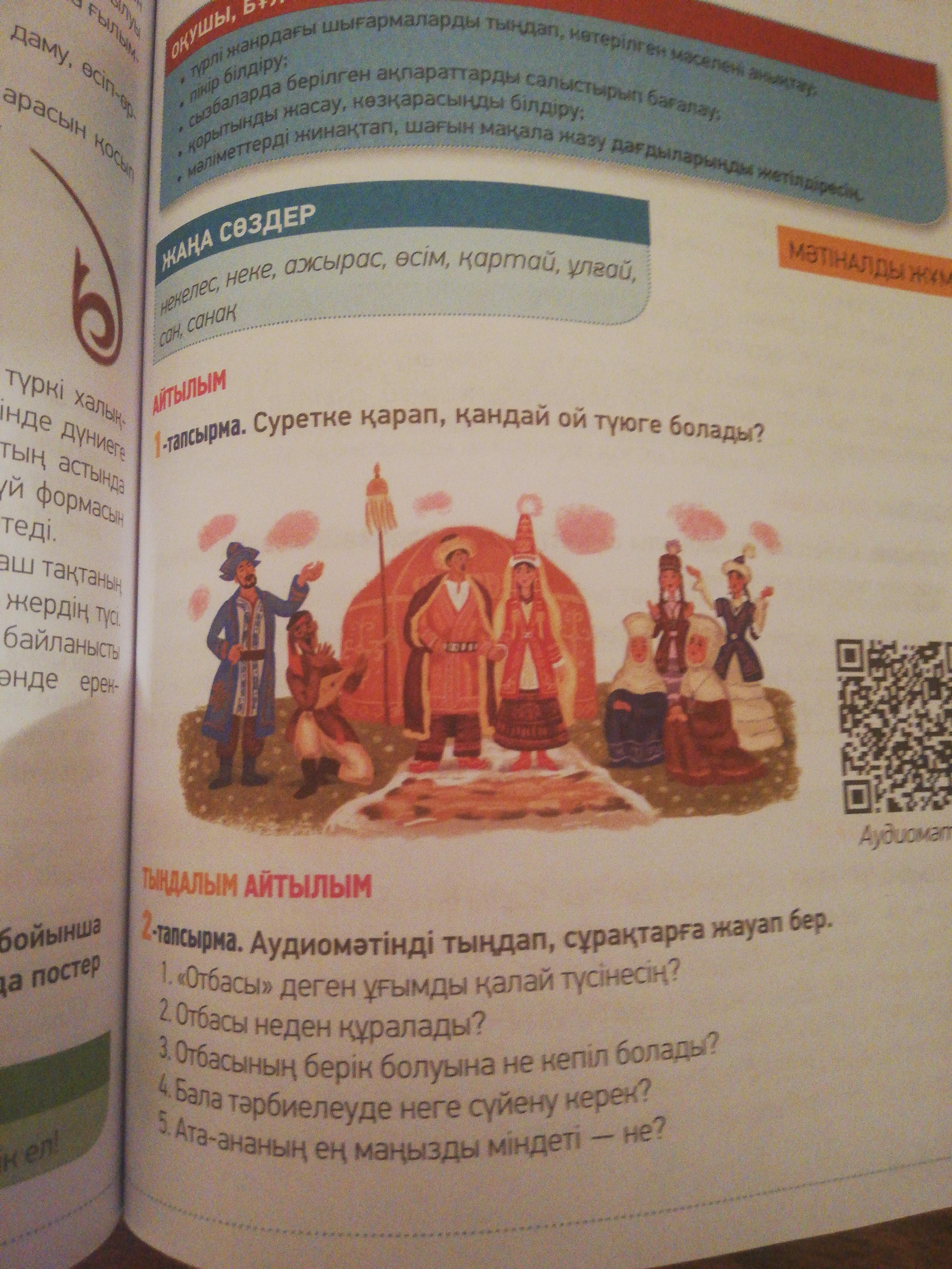 2.отбасы анаңнан, әкеңнен, ініңнен, әпкеңнен, ағаңнан, әжеңнен, атаңнан құралады.