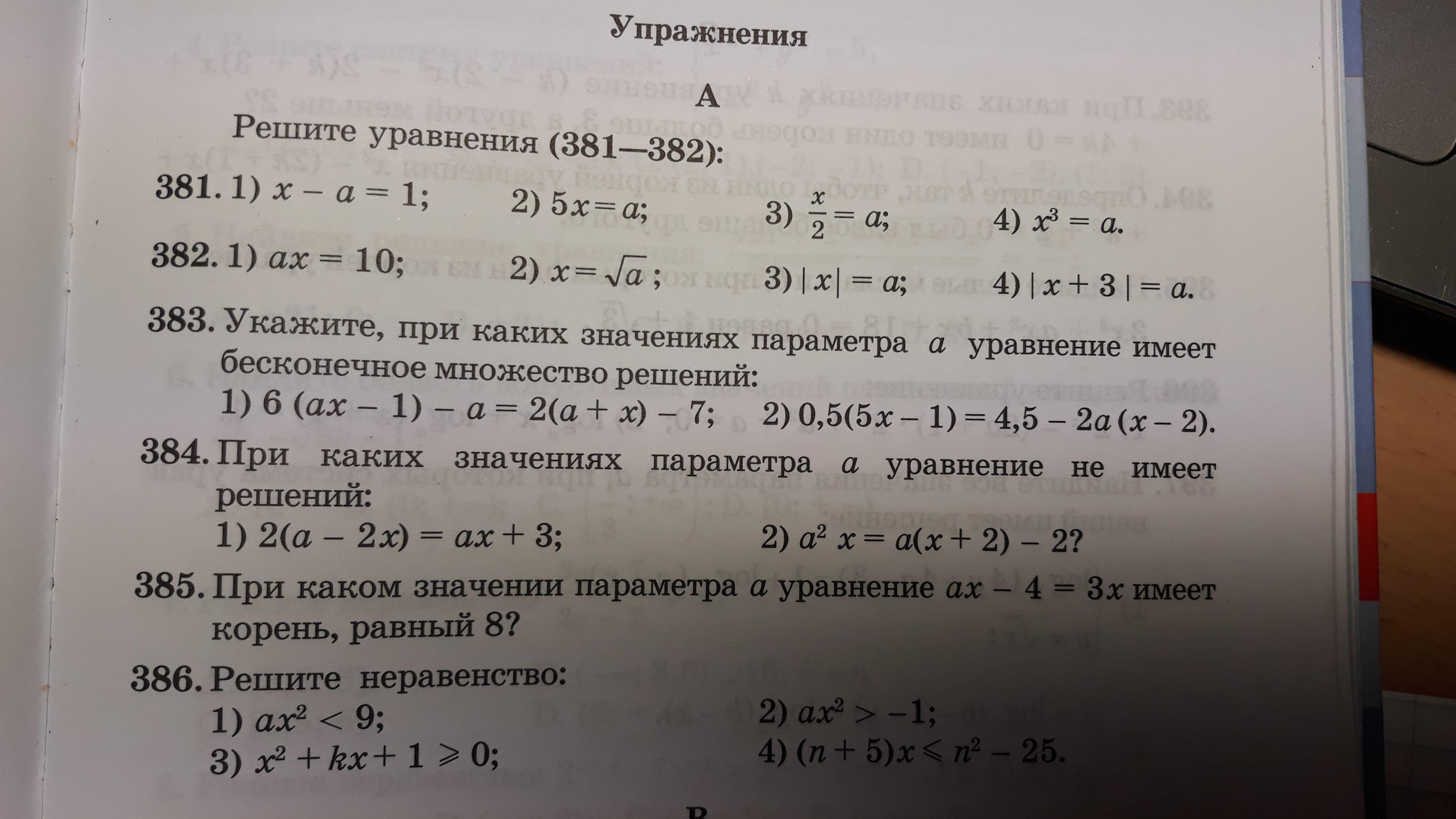 Помогите решить уравнения с параметрами 381 и 382 СРОЧНО