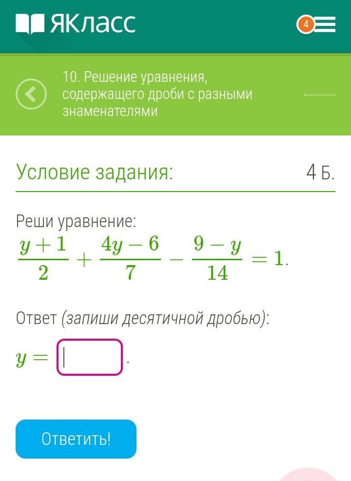домножаем первое на 7, второе на 2, третье на 1, четвёртое на 14, сокращаем , решаем y+1+4y-6-9-y