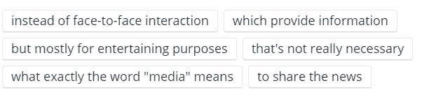 But at the same time, I've realised that the media takes a lot of time for nothing. I spend a lot of time on social networks and virtual communication 5) ________