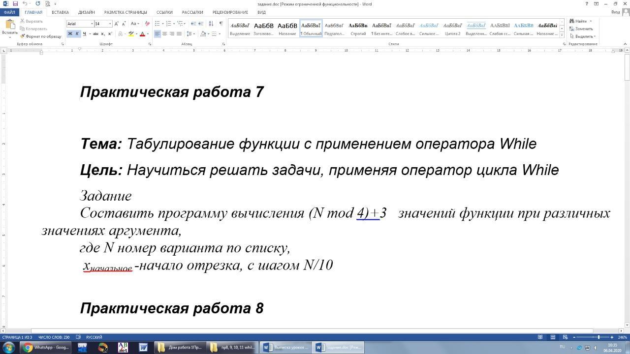 Составить программу вычисления (9 mod 4)+3=1+3=4 значений функции при различных значениях аргумента,