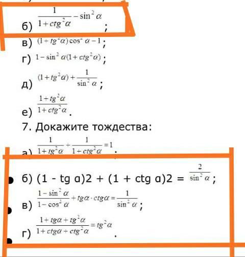 г) 1+tg a+tg² a/1+ctg a+ctg² a=tg² a