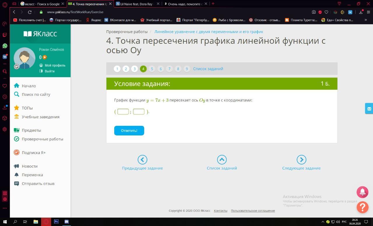 y=kx+b, коэффициент b отвечает за точку пересечения с ОУ