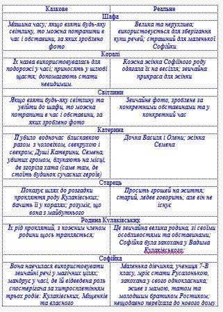 4.Заповніть таблицю «Казкове й реальне в повісті-казці», описуючи події, персонажів і речі. "Русалонька з 7-В"