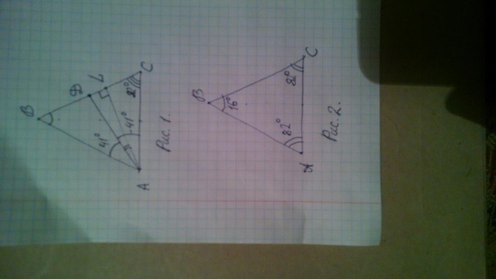В равнобедренном треугольнике к боковой стороне проведена высота и биссектриса угла, прилежащего к основанию.