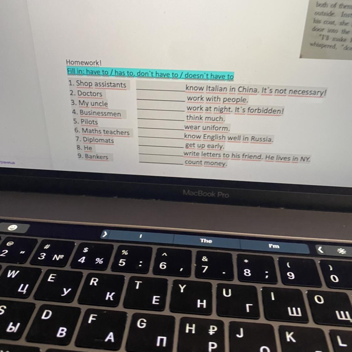 Ответ: 1. don't have to 2. have to 3. has to 4. don't have to 5. have to 6. don't have to 7. has to 8. have to