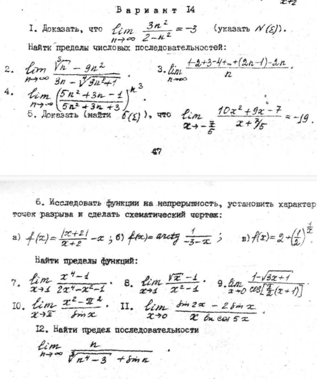 Пределы. Типовой расчет по математике.
