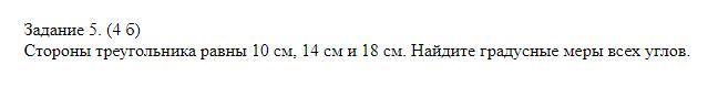 Стороны треугольника равны 10 см, 14 см и 18 см. Найдите градусные меры всех углов.