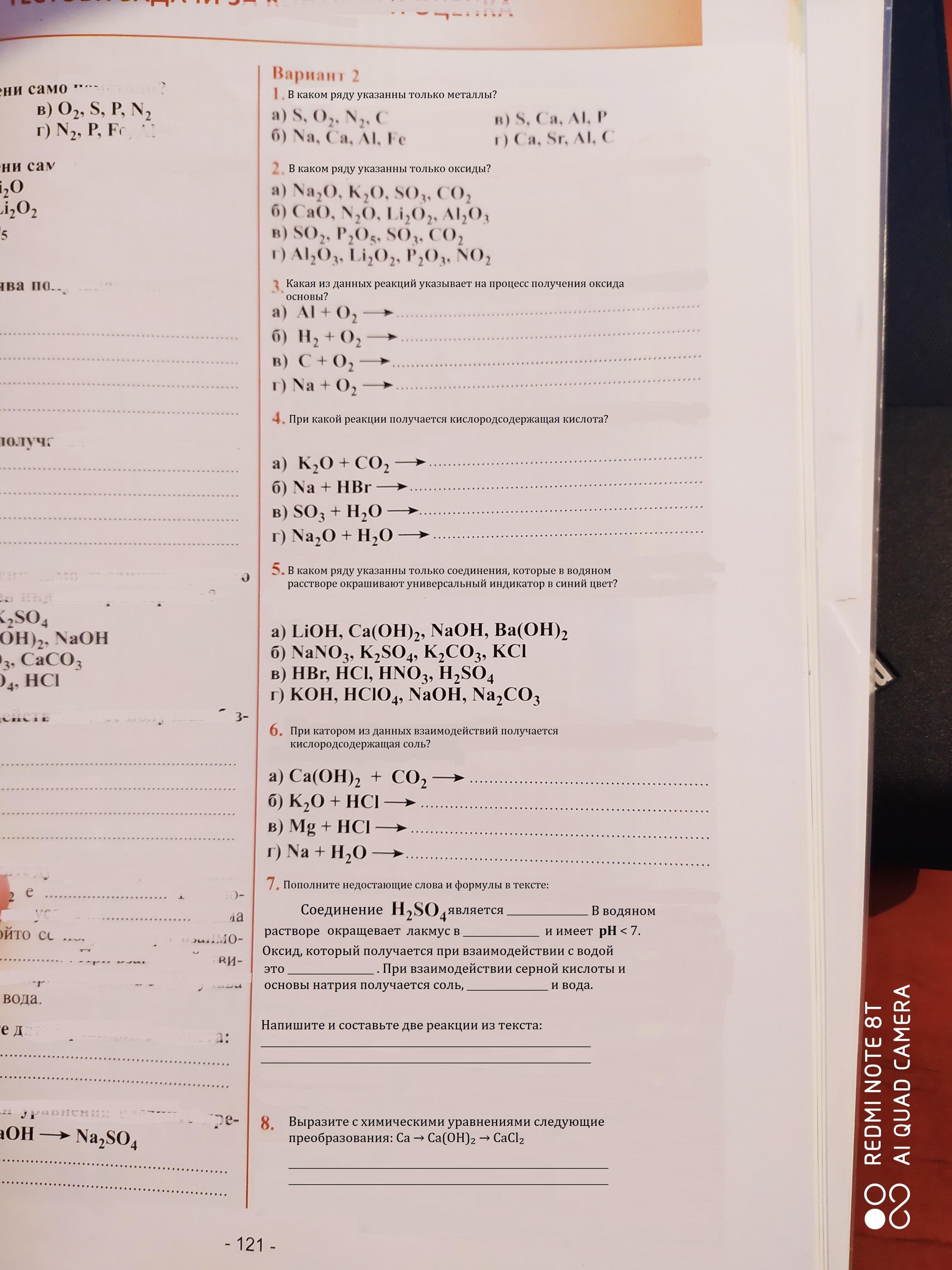 7) является кислотой, окрашивает лакмус в красный, оксид SO3, получается соль, газ и вода