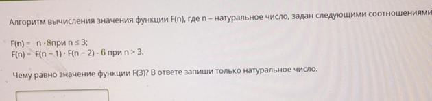 Алгоритм вычисления значения функции F(n), где n - натуральное число, задан следующими соотношениями