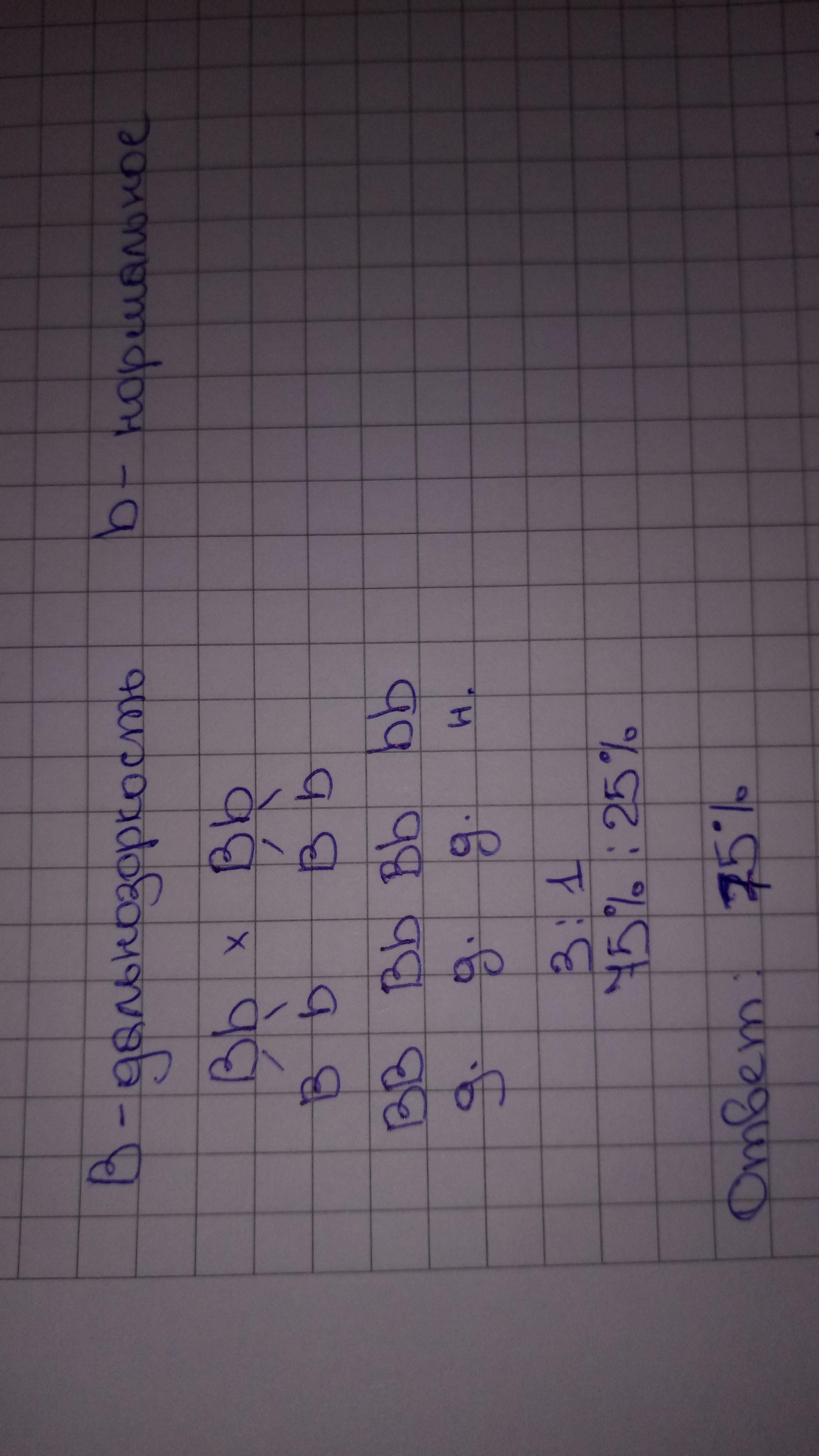 У человека дальнозоркость доминирует над нормальным зрением. Найди вероятность (%) рождения дальнозорких детей у гетерозиготных родителей, имеющих дальнозоркость. (Запиши в ответе число. Пример: 75.)