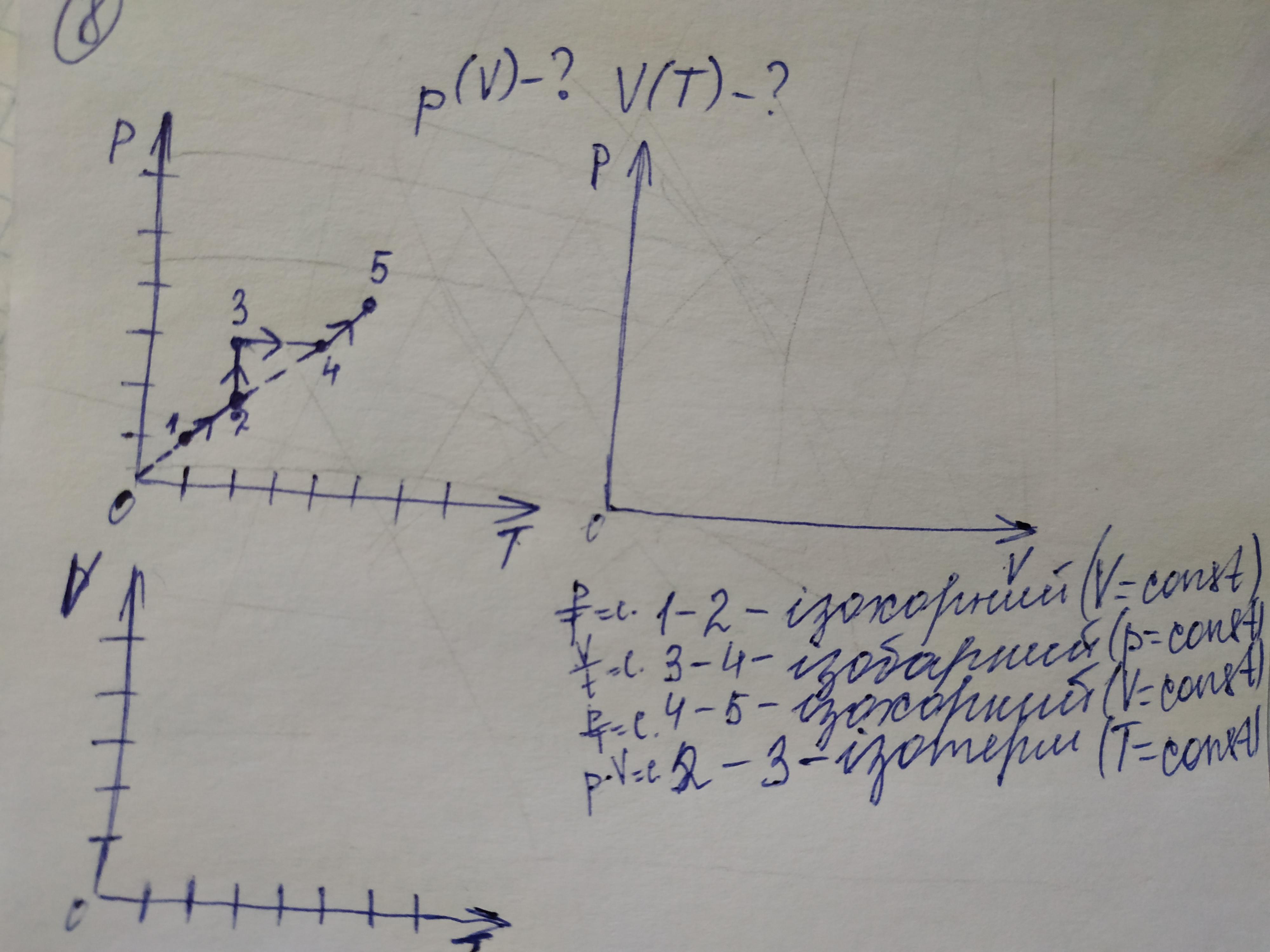 На рисунке представлен цикл в координатах pT. Разработать эту диаграмму в координатах pV и VT.