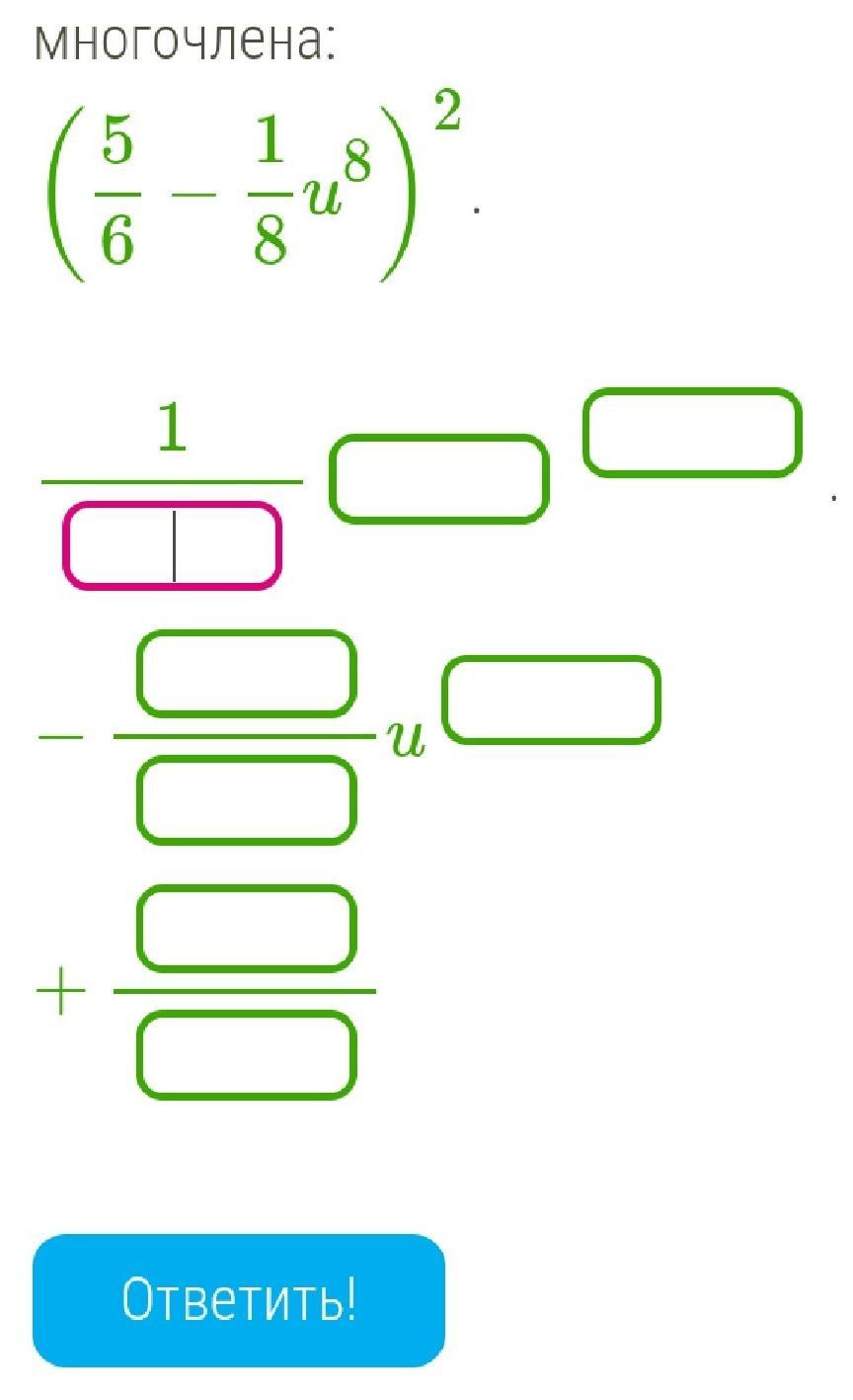 (5/6 - 1/8 u⁸)²= (5/6)²-2*5/6*1/8 u⁸ + (1/8 u⁸)²=