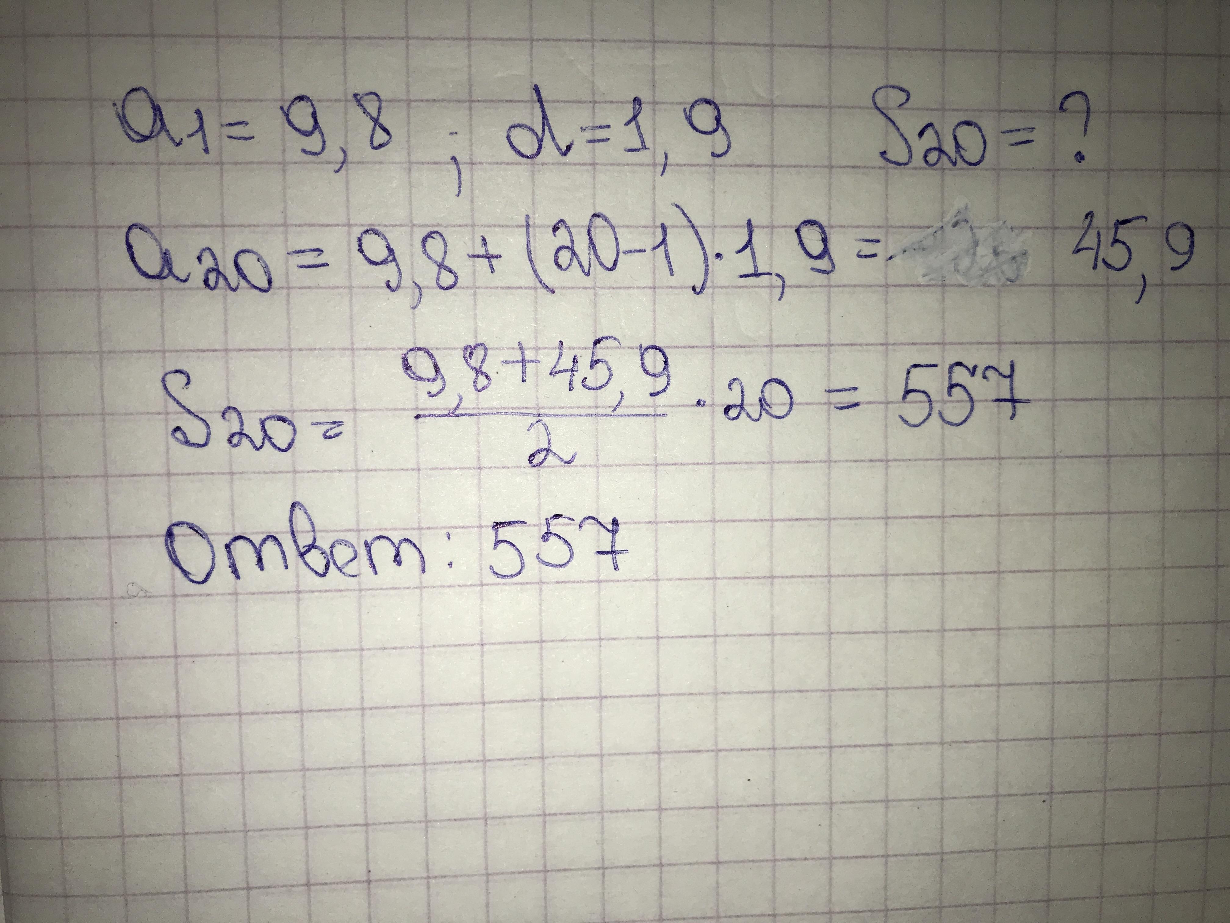 Дана арифметическая прогрессия (an). Известно, что a1=9,8 и d=1,9.