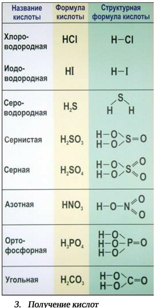 Ответ:1. Кислотами называются сложные вещества, состоящие из атомов водорода и кислородных остатков.