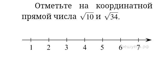 корень из 34=5,83 находишь точку 5 и двигаешь к 6