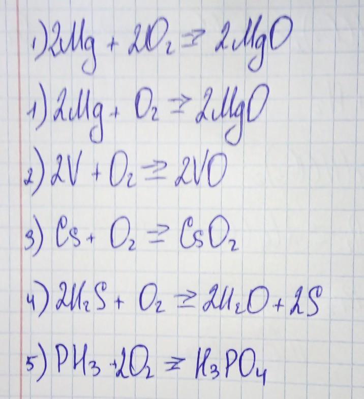 5) 2PH3 + 4O2 = P2O5 + 3H2O