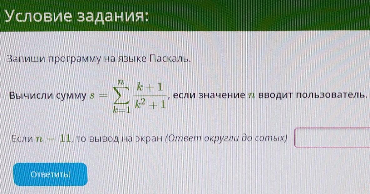 Если п— 11, то вывод на экран (Ответ округли до сотых)