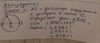 AC-диаметр окружности с центром в точке O определите угол ΔBOC если AOB=124*