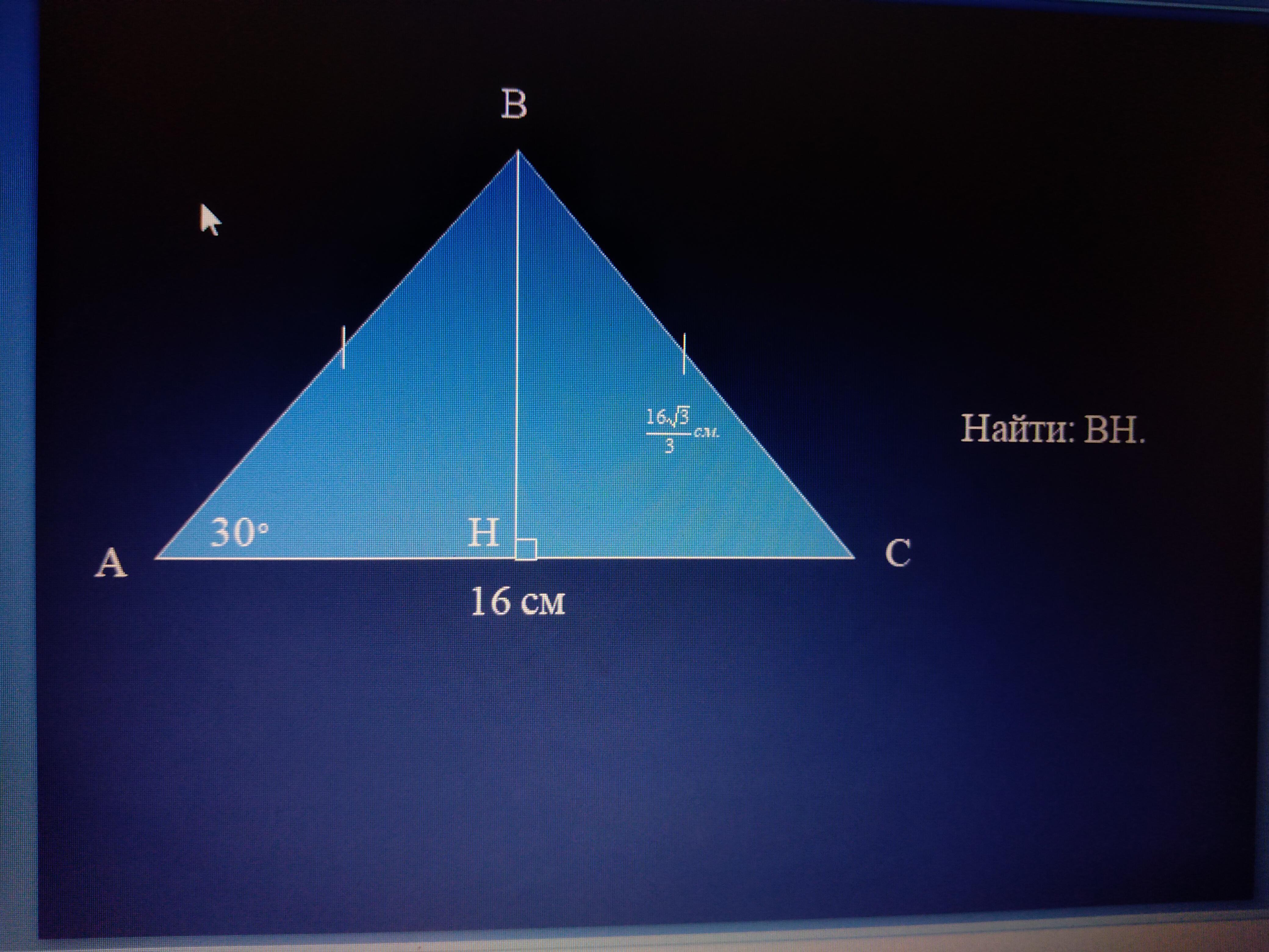 Дан прямоугольный треугольник ABC, BH - высота, H равен 16 см