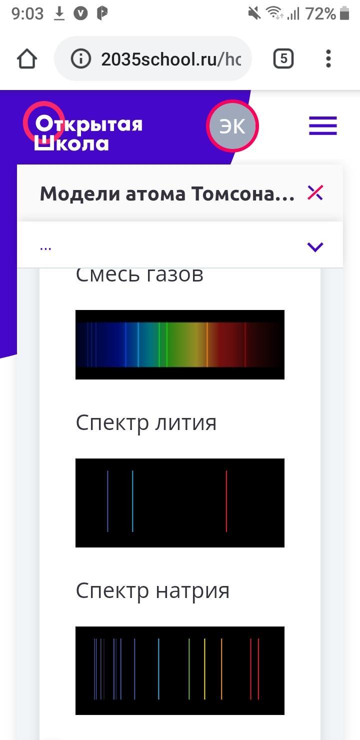 2.Изображение показывает спектр смеси газов. Дана модель спектра, определите, из каких элементов изготовлена смесь.