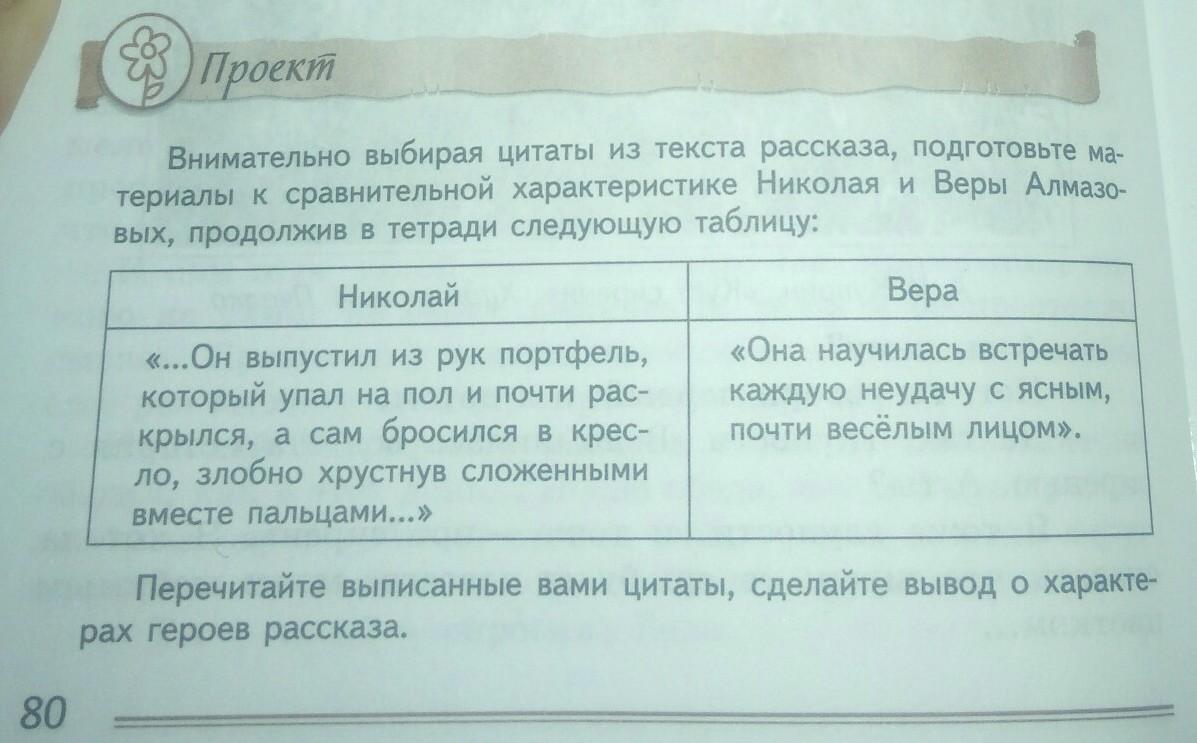 внимательно выбирая цитаты из текста рассказа, подготовьте материалы к сравнительной характеристике Никола, И Веры Алмазовых, продолжи в тетради след.таблицу: