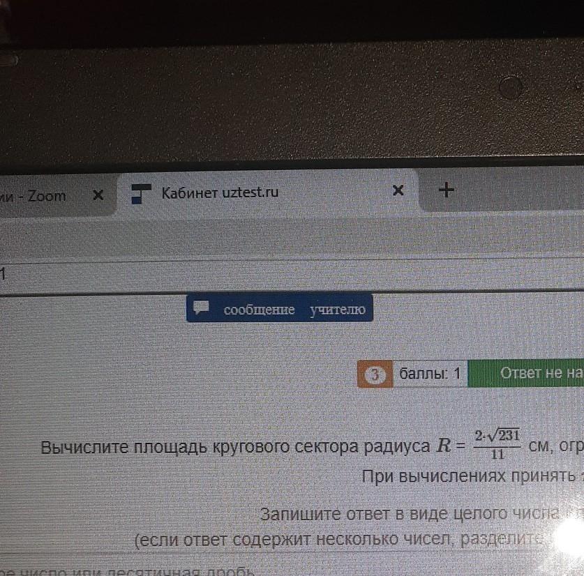 Вычислите площадь кругового сектора радиуса R=2×√231/11 см, ограниченного дугой с градусной мерой a=165гр