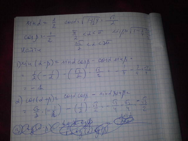 Дано: sin альфа = 1 деленная на 2 ; cos Бета = - 1 деленная на 2