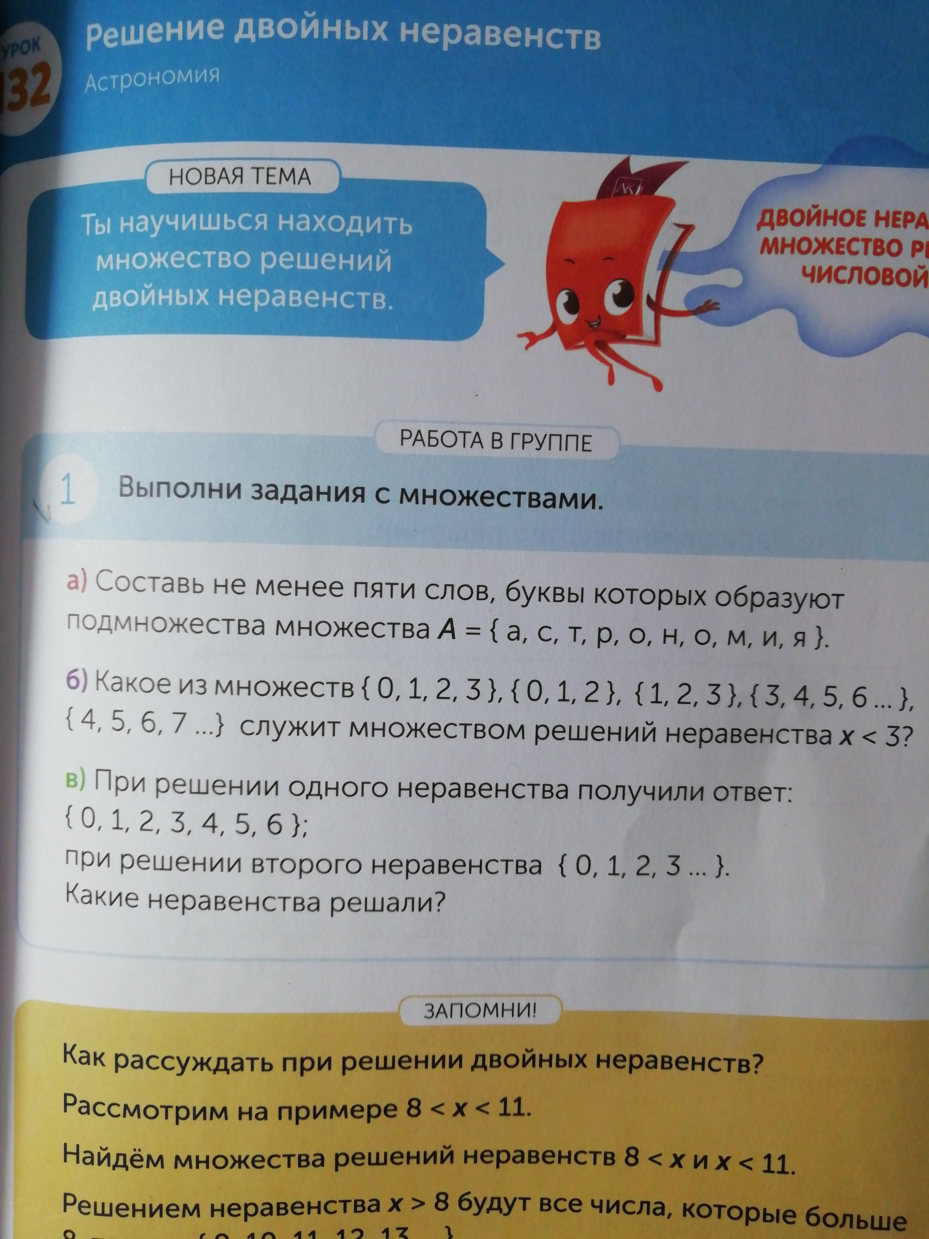 а) Составь не менее пяти слов, буквы которых образуют подмножество множества A = {а, с, т, р, о, н, о, м, и, я}