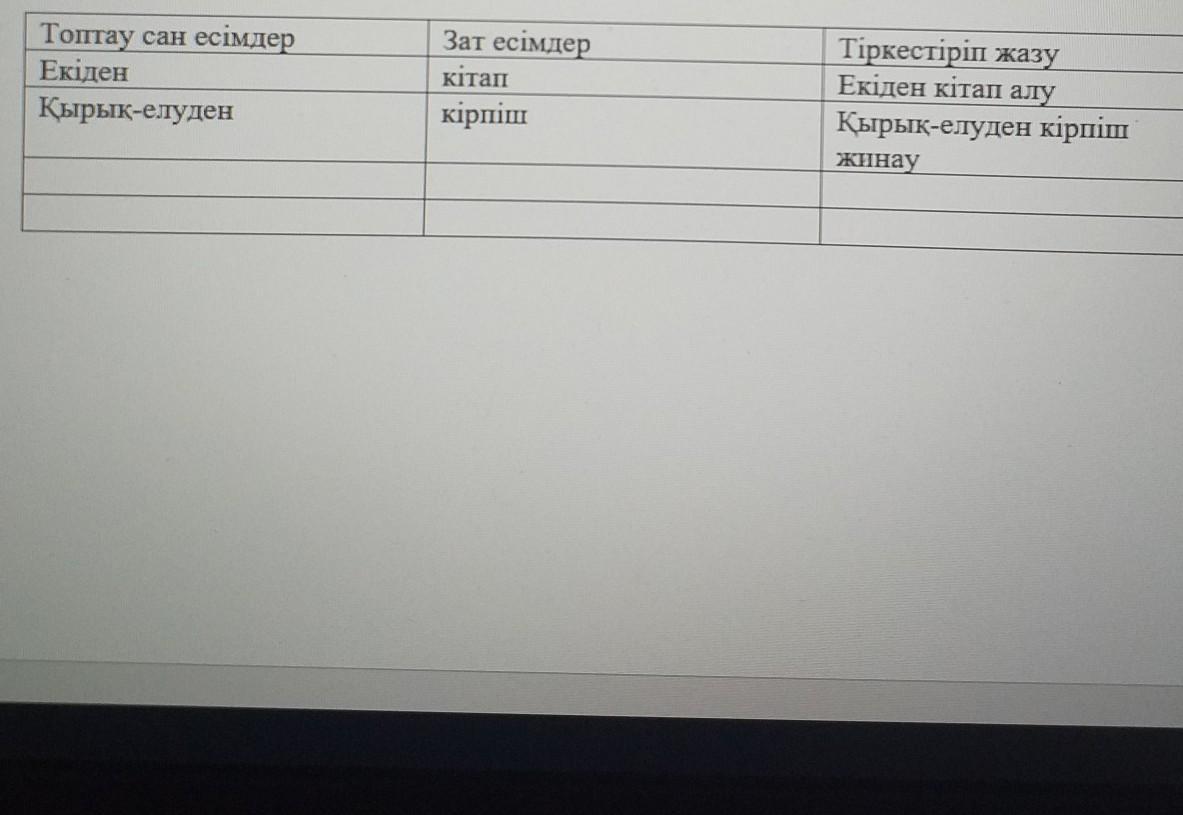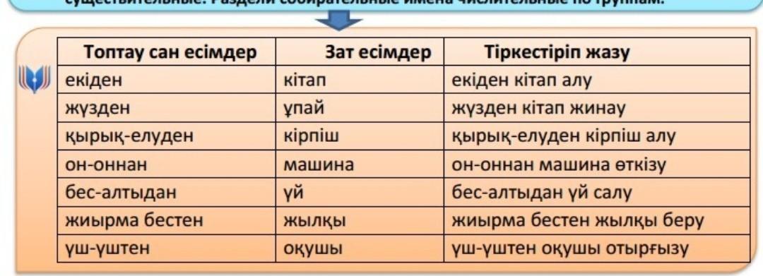 Берілген топтау сан есімдерін зат есімдермен тіркестіріп жаз. Топтау сан