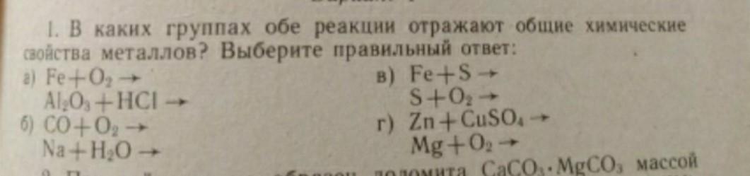 в каких группах обе реакции отражают общие химические свойства металлов?​