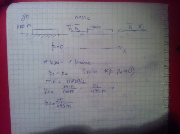 помогите,пожалуйста!!!))---при выстреле из автомата вылетает пуля массой m со скоростью v.какой импульс приобретает после выстрела автомат если его масса в 500 раз больше массы пули
