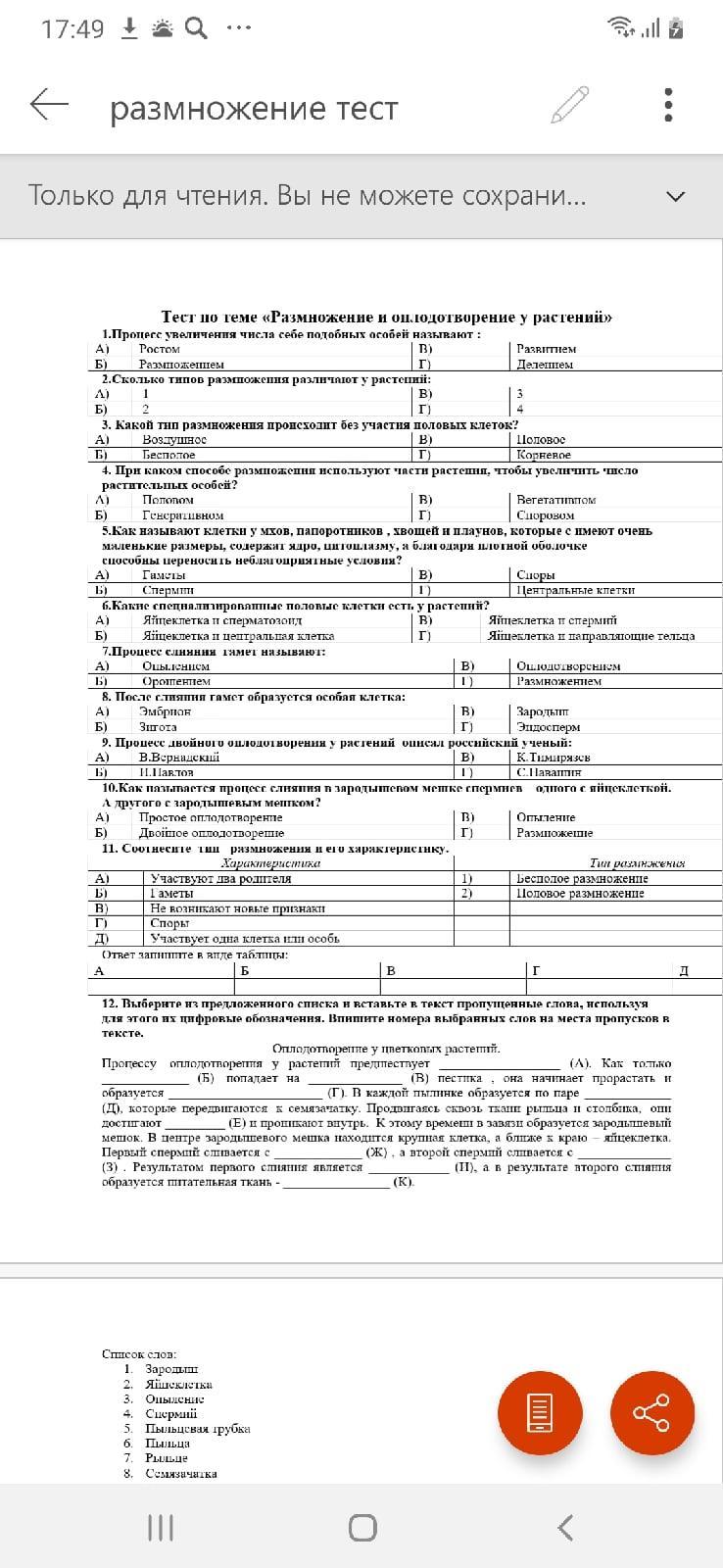 Пожалуйста пишите тест "Размножение и оплодотворение у растений" Срочно очень нужно.Зарание спасибо!