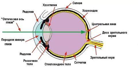 Тк как он проходит последовательно сквозь жидкость передней (и задней) камеры, хрусталик и стекловидное тело, пройдя через всю толщу сетчатки, попадает на отростки светочувствительных клеток — палочек и колбочек.