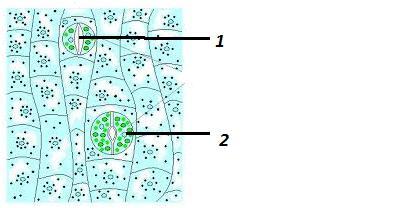 Ну я тут мало чего понимаю, но вроде 1-это устьичная щель, а 2 устьица.
