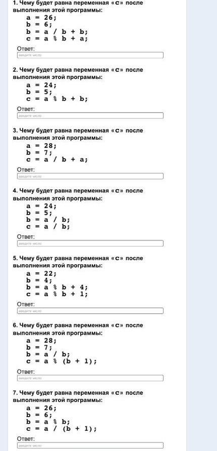 c = a / (b + 1) = 26 / (2 + 1) = 26 / 3 = (7*3 + 5) / 3 = 7