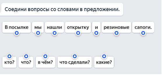 в чём? в посылке , кто? мы , что сделали? нашли , что? открытку , какие? резиновые, что? сапоги.