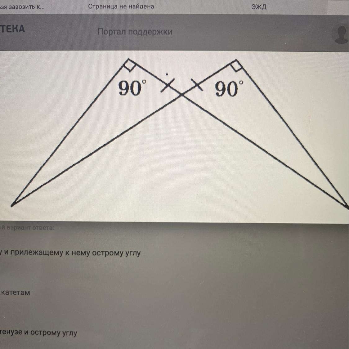 Прямоугольные треугольники, изображенные на рисунке, будут равны