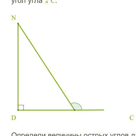 Дан прямоугольный треугольник DNC и внешний угол угла ∡ C.