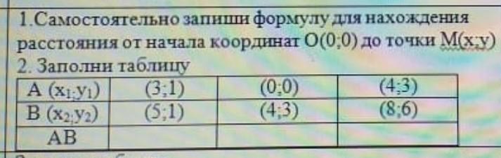 сомостоятельно запешите фолмолу для для нахождение ратояние от начала кординант О(0;0) до точки М(х,у)