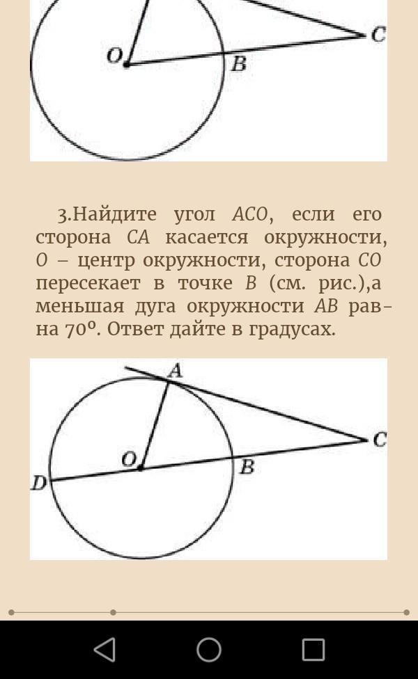 Найдите угол ACO, если его сторона CA касается окружности O - центр окружности сторона CO пересекает в точке B