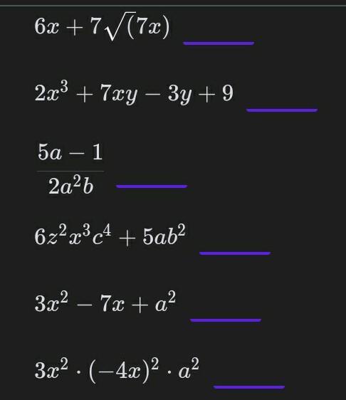 Сопоставьте каждое из алгебраических выражений с их названиями.