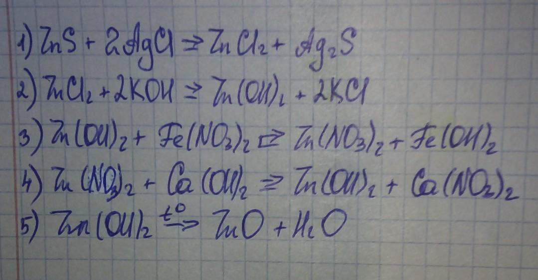 ZnS → ZnCl₂ → Zn(OH)2 → Zn(NO3)2→Zn(OH)2→ ZnO