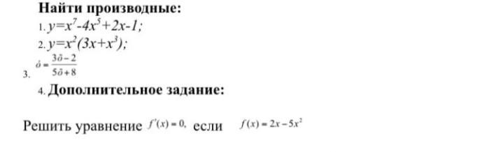 Помогите пожалуйста, срочно!!! Задания по нахождению производной функции