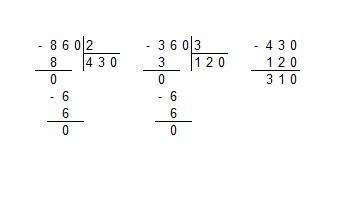 860 ÷ 2 - 360 ÷ 3 = 430 - 120 = 310