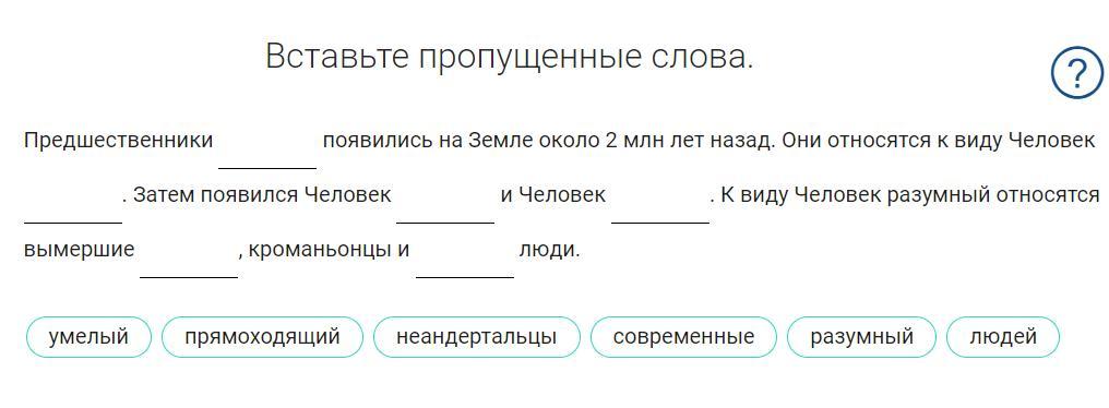 1) Людей 2)Прямоходящий 3) Умелый 4) Разумный 5)Неандертальцы 6) Современные